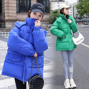 2022外贸克莱因蓝宽松小个子冬季面包服女式短款连...