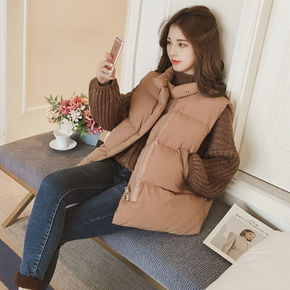 2021新款羽绒棉宽松气质通勤韩版马甲单排扣立领白...