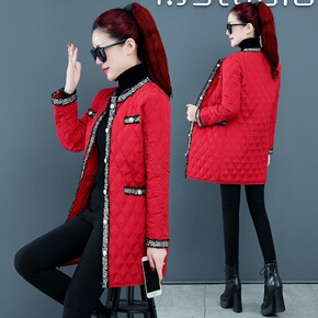 棉衣女中长款冬季韩版宽松棉服编织菱形格轻薄羽绒棉女...