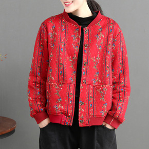 秋装新款碎花棒球服领开衫短款外套女上衣花色菱格内口...