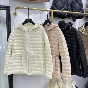 轻薄款羽绒服女2021年秋冬新款收腰修身薄款连帽短...