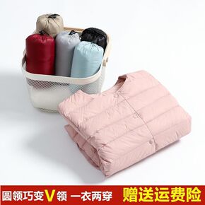 羽秋冬新款羽绒服马甲背心女宽松轻薄白鸭绒短款坎肩马...