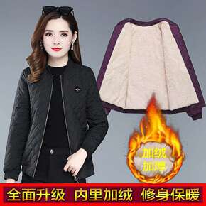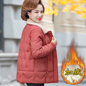 加绒妈妈装冬装短款小棉衣中年女大码棉服中老年女装加...