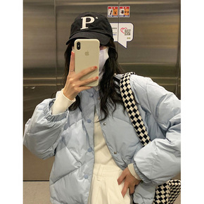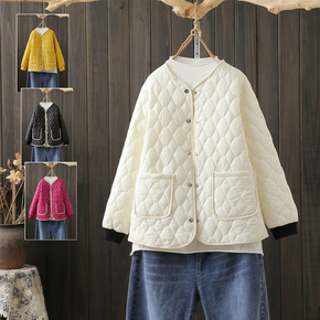 秋冬大码200斤韩版保暖棉衣胖妹妹菱格轻薄款V领棉...