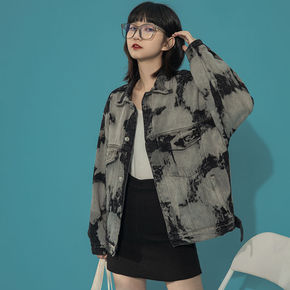 复古扎染牛仔外套女韩版宽松休闲bf百搭ins夹克2...
