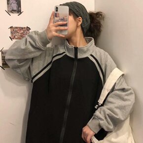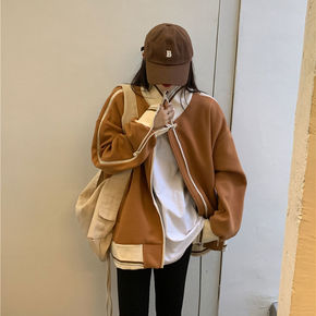 春秋cec拉链外套开衫韩版宽松bf学生慵懒风超火洋...