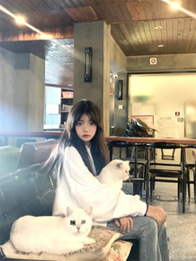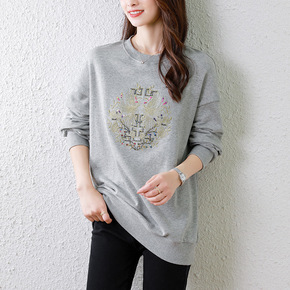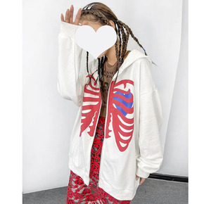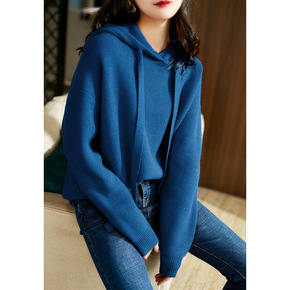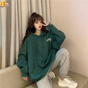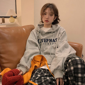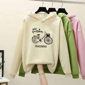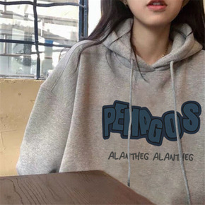 【65鱼鳞】印花韩系宽松精致简约款慵懒连帽套头长袖...