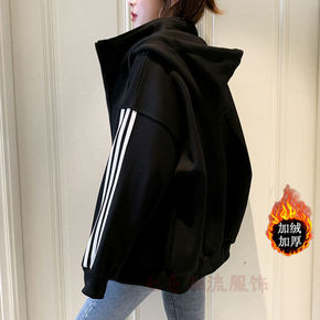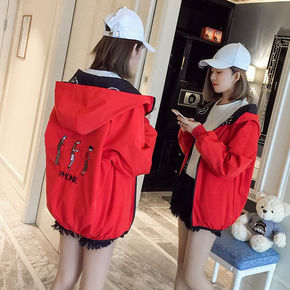 两面穿外套女韩版学生潮bf原宿风宽松百搭情侣连帽短...