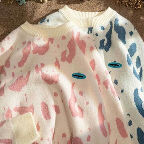 甜系学生原宿风套头毛衣情侣装卡通趣味针织衫外套男女...