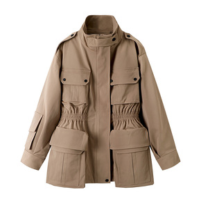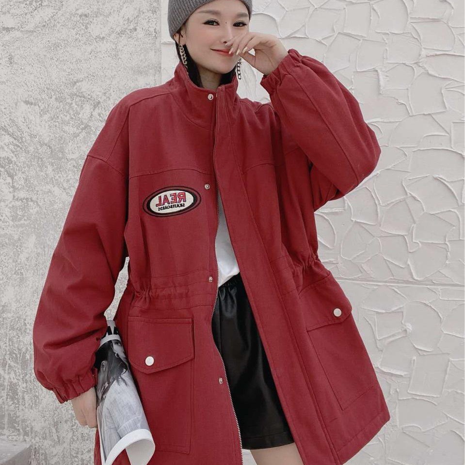 外套女韩版小个子2020年秋季宽松大码中长款抽绳收...