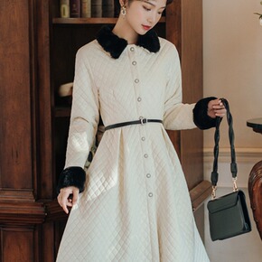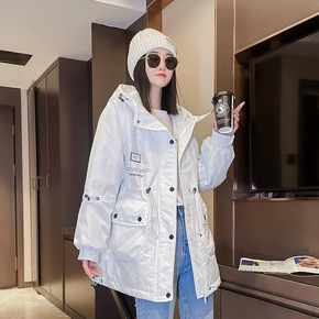 柜上1000+秋冬新款抽绳收腰显瘦轻薄夹棉中长款棉...