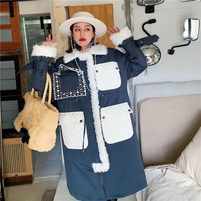工装派克服棉衣女过膝长款韩版chic复古收腰显瘦卡...