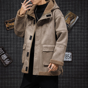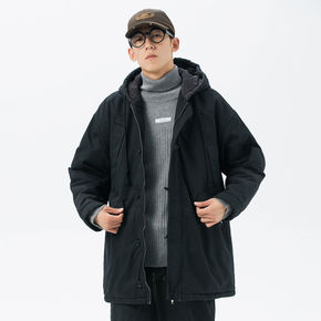 日系工装外套男中长款加厚冬季保暖拼接棉服潮牌宽松休...