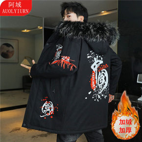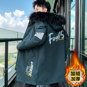 青少年棉衣男士中长款韩版加绒加厚羽绒棉服棉袄学生冬...