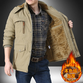 中老年男士加绒棉衣爸爸冬装外套加厚中长款棉服冬季老...