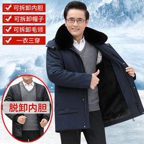 中老年棉衣男爸爸冬装外套冬季加厚加绒中长款带毛领爷...