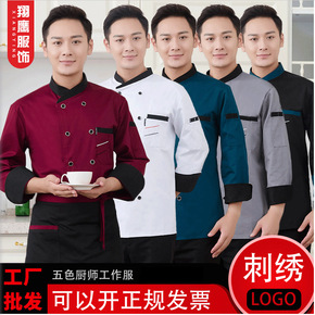 酒店厨师服男长袖餐饮烘焙坊厨师工作服短袖饭店食堂女...