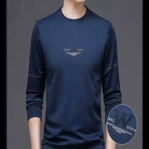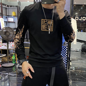 跨境外贸定 制新品男士圆领卫衣潮流宽松秋款T恤男3...