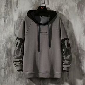 跨境新款男士抓绒卫衣拼接连帽衫秋冬休闲运动卫衣加绒...