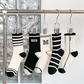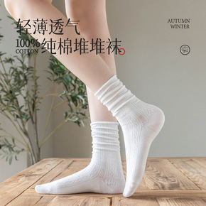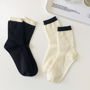 移圈袜子女中筒日系黑白撞色堆堆袜女镂空透气薄款女士...