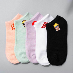 火影忍者袜子鸣人佐助卡通可爱学生糖果色浅口棉袜时尚...