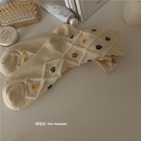 诸暨日杂少女感小碎花中筒袜复古菱格元素秋新女生袜子...