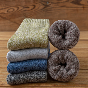 新品中筒美利奴羊毛袜男毛巾底保暖舒适户外运动袜加厚...