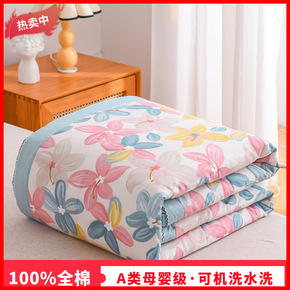明超家纺A类针织棉夏被柔软印花夏被被子被芯可水洗单...