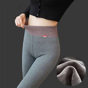 螺纹加绒打底裤加绒加厚高腰纯棉打底裤女外穿秋冬季螺...