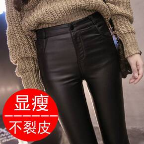 哑光皮裤女加绒加厚网红羊绒加厚皮裤女高腰休闲款裤外...