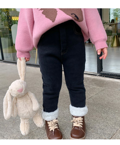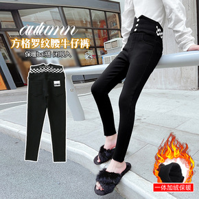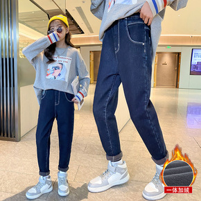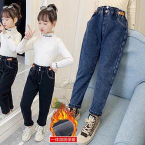 女童加绒牛仔裤一体绒秋冬2021新款中大童加厚冬季...