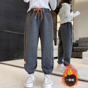 女童长裤子加绒冬季2022新款一体绒帅气中大童儿童...