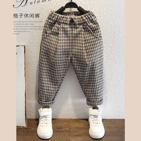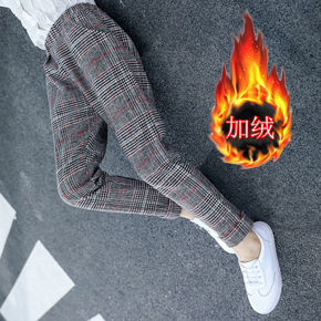 女童春秋休闲裤女孩秋冬加绒长裤新款中大童韩版格子裤...