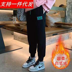 2021秋冬装黑色儿童喇叭裤厚加绒女童休闲裤大童小...