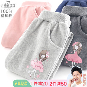 女童裤子儿童运动裤春秋纯棉外穿长裤女大童加厚卫裤加...