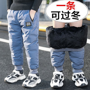 男童加绒加厚裤子冬季2021新款休闲儿童棉裤一条过...