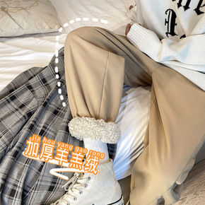 加绒加厚裤子男冬季新款羊羔绒港风潮流棉裤东北爆款保...
