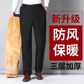 新款冬季中老年男士加厚加绒棉裤高腰爸爸超厚三层腈纶...