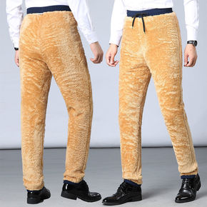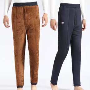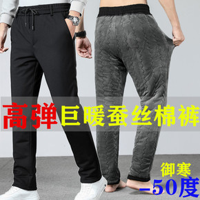 羊绒裤男外穿加绒加厚保暖冬季青年高腰中老年蚕丝弹力...