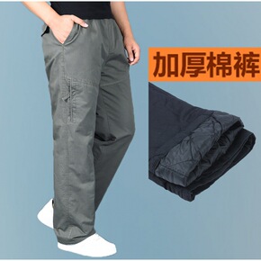 冬季夹棉加厚休闲裤中老年人男装加大加肥高腰松紧带纯...