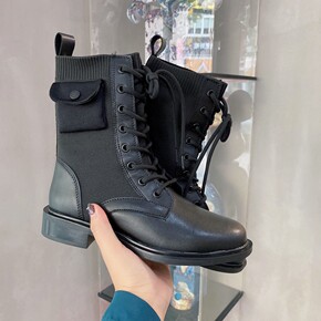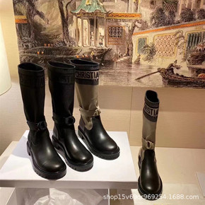 D家长筒靴2021年秋冬新款马丁靴女刺绣字母平底真...