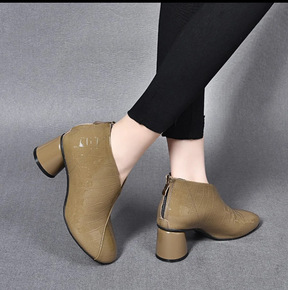 201秋冬季方头短靴中筒靴单靴单鞋休闲百搭女鞋...
