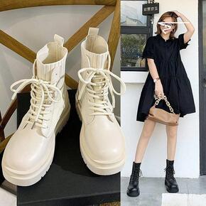 思s加图2021冬季新款马丁靴帅气中筒靴袜靴弹力靴...