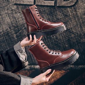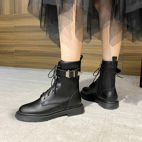 2021秋冬季新款马丁靴女英伦风系带机车靴学院风短...