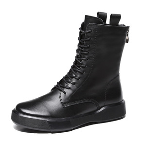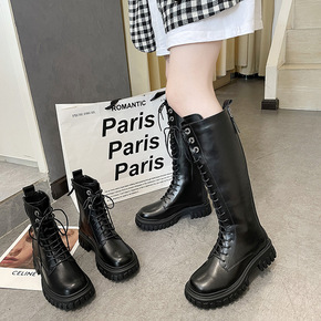 2021复古百搭女靴黑色圆头高筒耐磨马丁靴休闲日常...