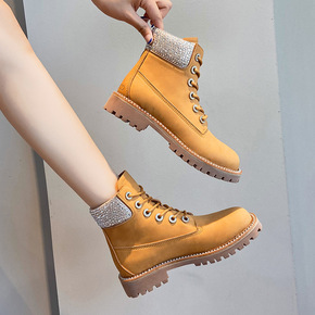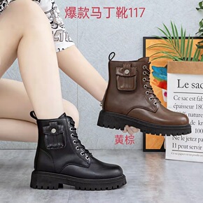 大黄靴女2021新款秋冬马丁靴真皮厚底英伦风增高帅...