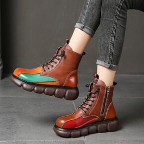 2021秋冬季新款原创复古平跟短靴女方头舒适软底马...