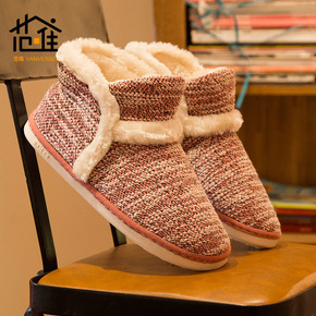 跨境冬季家居家棉鞋 情侣毛线保暖地板加厚棉鞋厂家批...