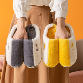 直播热卖秋冬季保暖棉拖鞋家居情侣加厚舒适防滑地板毛...