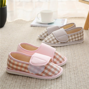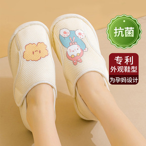 月子鞋夏季薄款孕产妇后包跟家居拖鞋 棉布透气软底春...